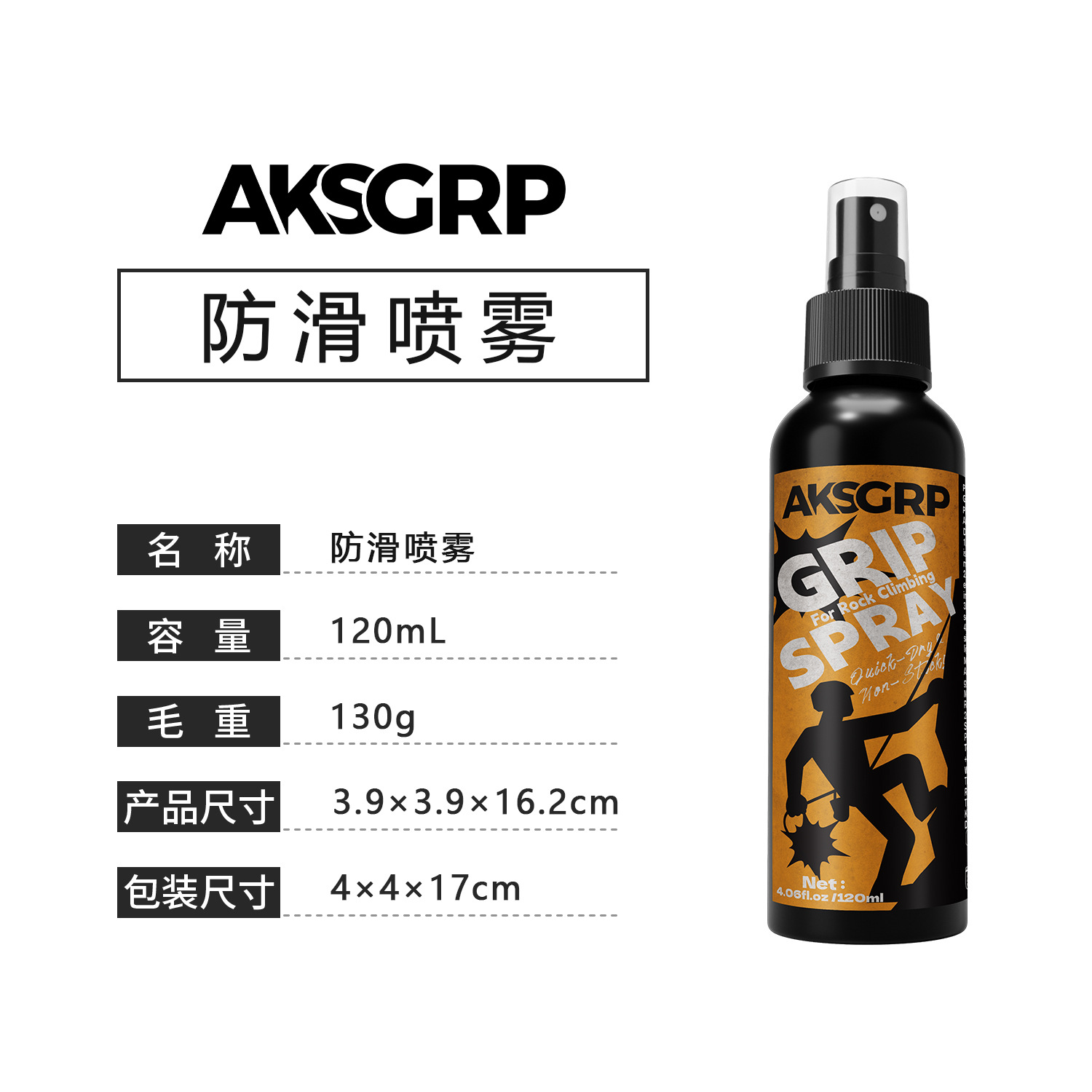 A product from the AKSGRP Shoe Care Series, it has a capacity of 120ml (4.06oz) and a gross weight of 130g (4.59oz). The product dimensions are 3.9×3.9×16.2cm, and the packaging dimensions are 4×4×17cm. Featuring fast-drying, non-toxic and anti-stick properties, it is equipped with a grip renewal system to effectively enhance grip. It is suitable for climbing (plastic holds, natural rock), gym use, as well as shoes and gloves, and can perform stably both indoors and outdoors.