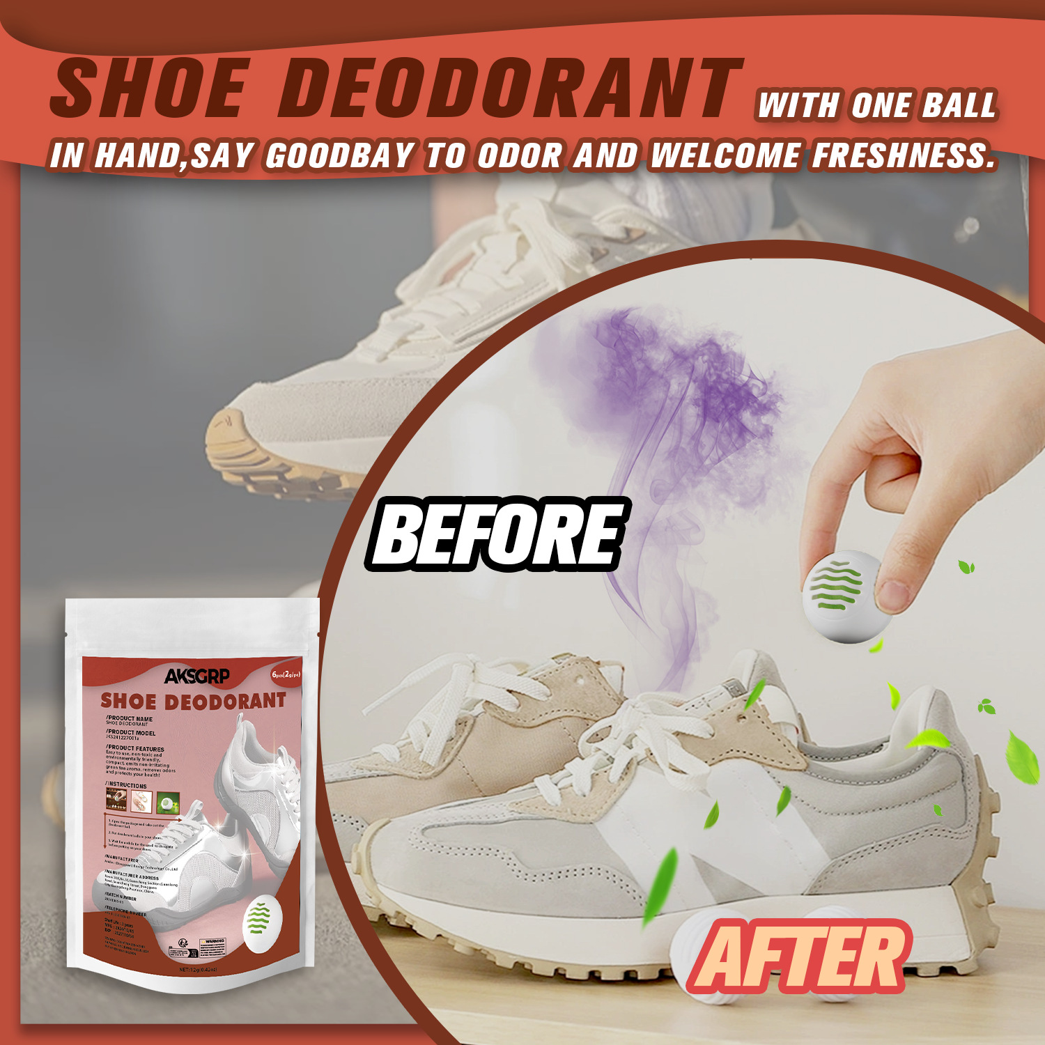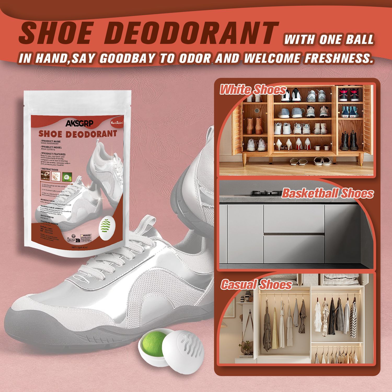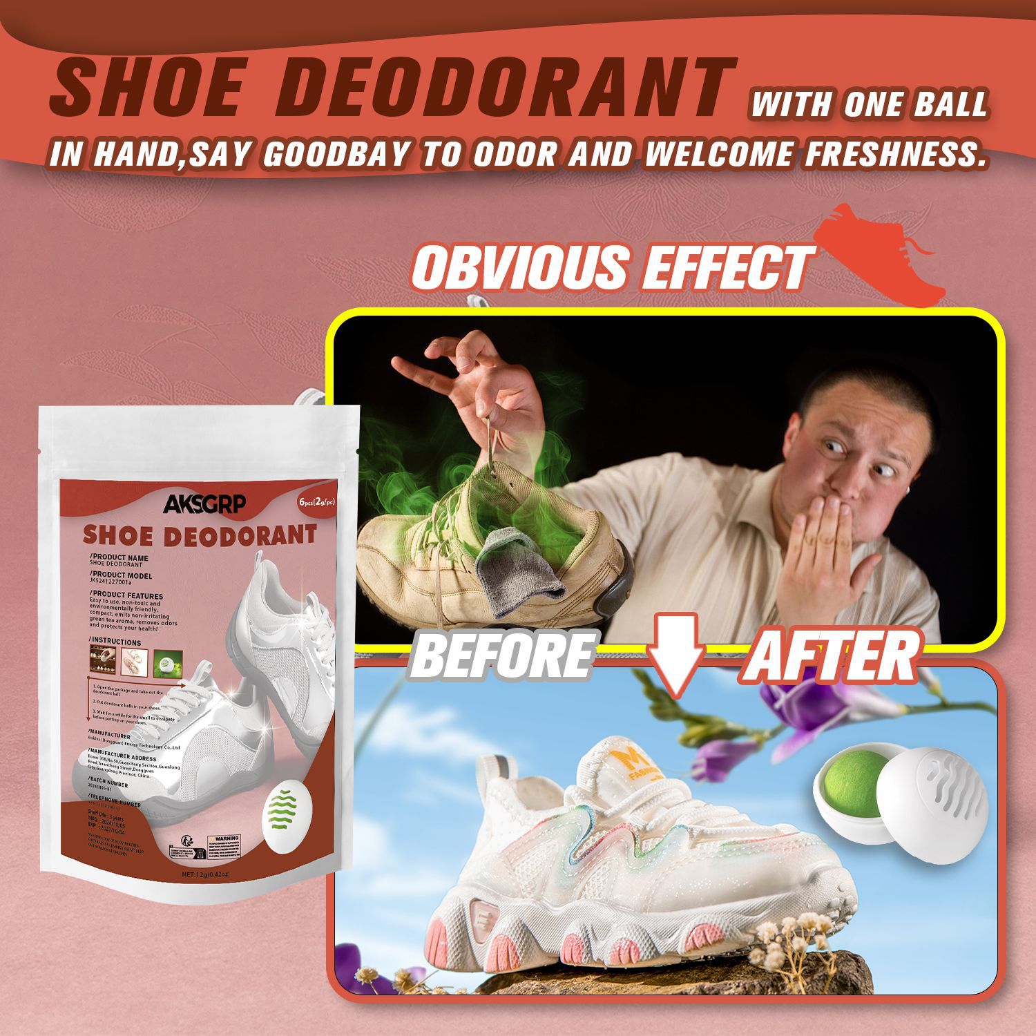 A product from the AKSGRP Shoe Care Series, each box contains 6 balls (2g per ball, total weight 12g/0.42oz, total gross weight of the box 20g). Each ball measures 40×40mm, and the packaging size is 140×200mm. Its core function is to absorb and eliminate odors, maintaining long-lasting freshness, suitable for scenarios such as shoes, shoe cabinets and athletic sneakers. When using, open the package and place the deodorizing balls in the target area. The first use may produce a slight pungent smell due to the ingredients contacting air, so you need to wait for the odor to dissipate before wearing shoes. It is easy to operate and can effectively solve the odor problem of footwear and storage spaces.