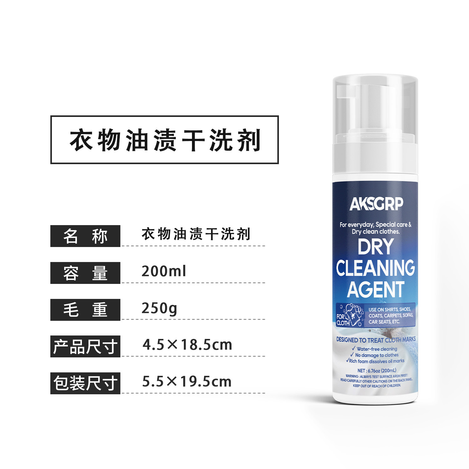 A product from the AKSGRP Laundry Cleaning Series. Its core advantages are water-free use and dual effects of oil and stain removal. It can quickly decompose stubborn stains such as cooking oil, chili oil, and sweat stains on clothes. After cleaning, it does not damage fabrics or leave watermark residues, and no washing or drying is required, making operation simple. Suitable for various clothing materials including cotton, linen, chemical fiber, and wool, it can also be used to clean stains on fabric surfaces like fabric sofas and car seats, meeting oil removal needs in multiple scenarios.